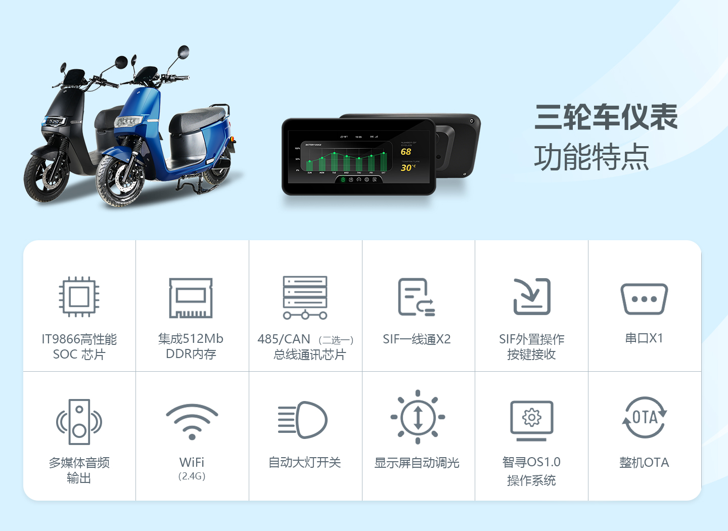 智寻二轮电动车智能仪表盘,作为车辆与用户的核心交互枢纽,以行业前沿技术重构骑行体验,兼顾个体用户的便捷需求与商用场景的高效诉求,让每一次出行都更安心、更智能。
